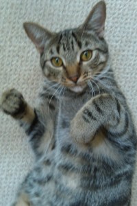He then will proceed to poke at my face with a paw. When he first started doing it he jabbed at me and there were times when it was like little punches. Now he is gentler, but the message is still the same. “Hey, look at me, hey, hey, here, here, let’s go.”
