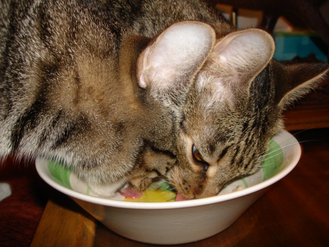 Pansy, always the lady, waltzes around my head and daintily lays down and purrs. This prompts Fudge to see what is going on, and then both cats commence dancing back and forth across my pillow. They will sashay back and forth, perhaps laying down, (plopping might be a better term for Fudge) until he determines it really is “time to get up”.